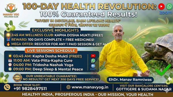 हमारे 100 डेज हेल्थ चैलेंज से जुड़ें: 03:45 AM पर हमारा "कफ दोष मुक्ति" सेशन पूर्णतः FREE:100 Days